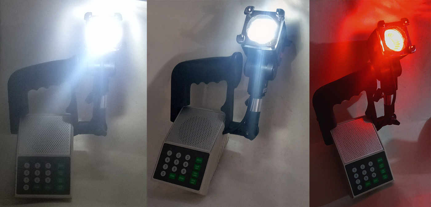 Pushing the button repeatedly, the light switches from "High- Medium- Low- Red- Red blinking".