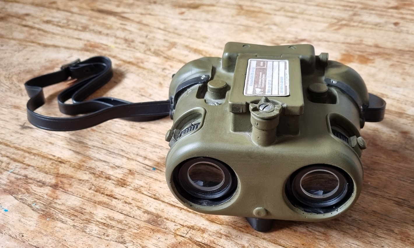 Finished prop (NB: this actually is a much browner colour, it's quite interesting how it looks OD under natural lighting). Attachment: Attachment: Attachment: Tempted to pop the front lenses out, and paint black around the edge, as the white edge is quite visible ... dunno, they're stuck in pretty tight. |