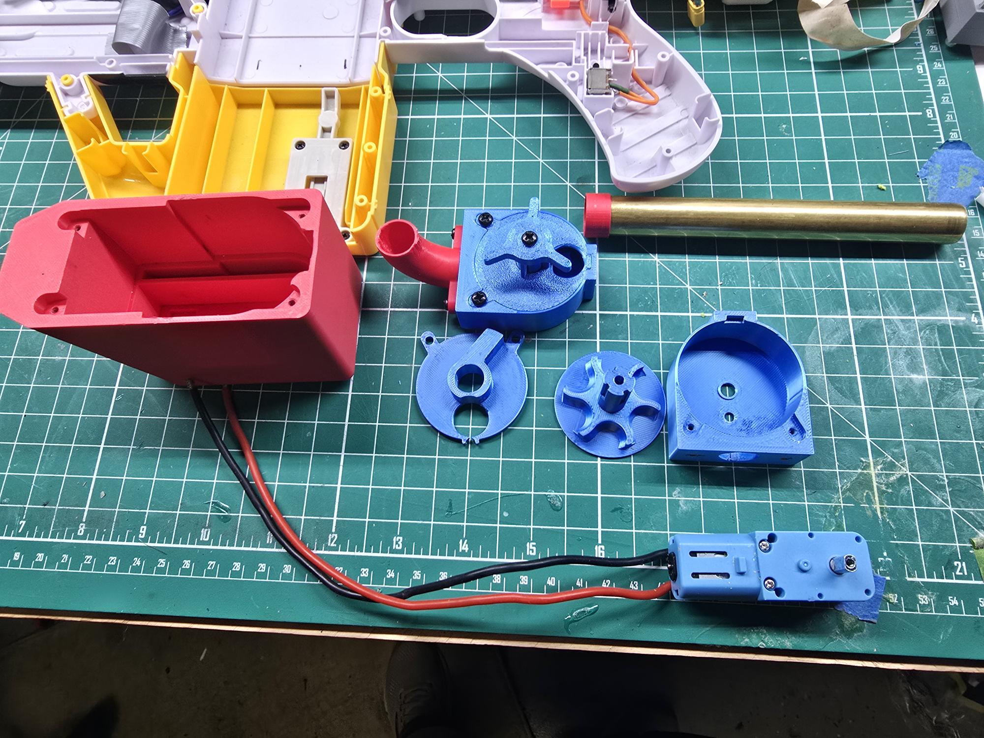 Trigger has been modified to a dual stage eliminating the need for the rev trigger, flywheel motors have been upgraded to Out Of Darts 130 Krakens with Worker flywheels.