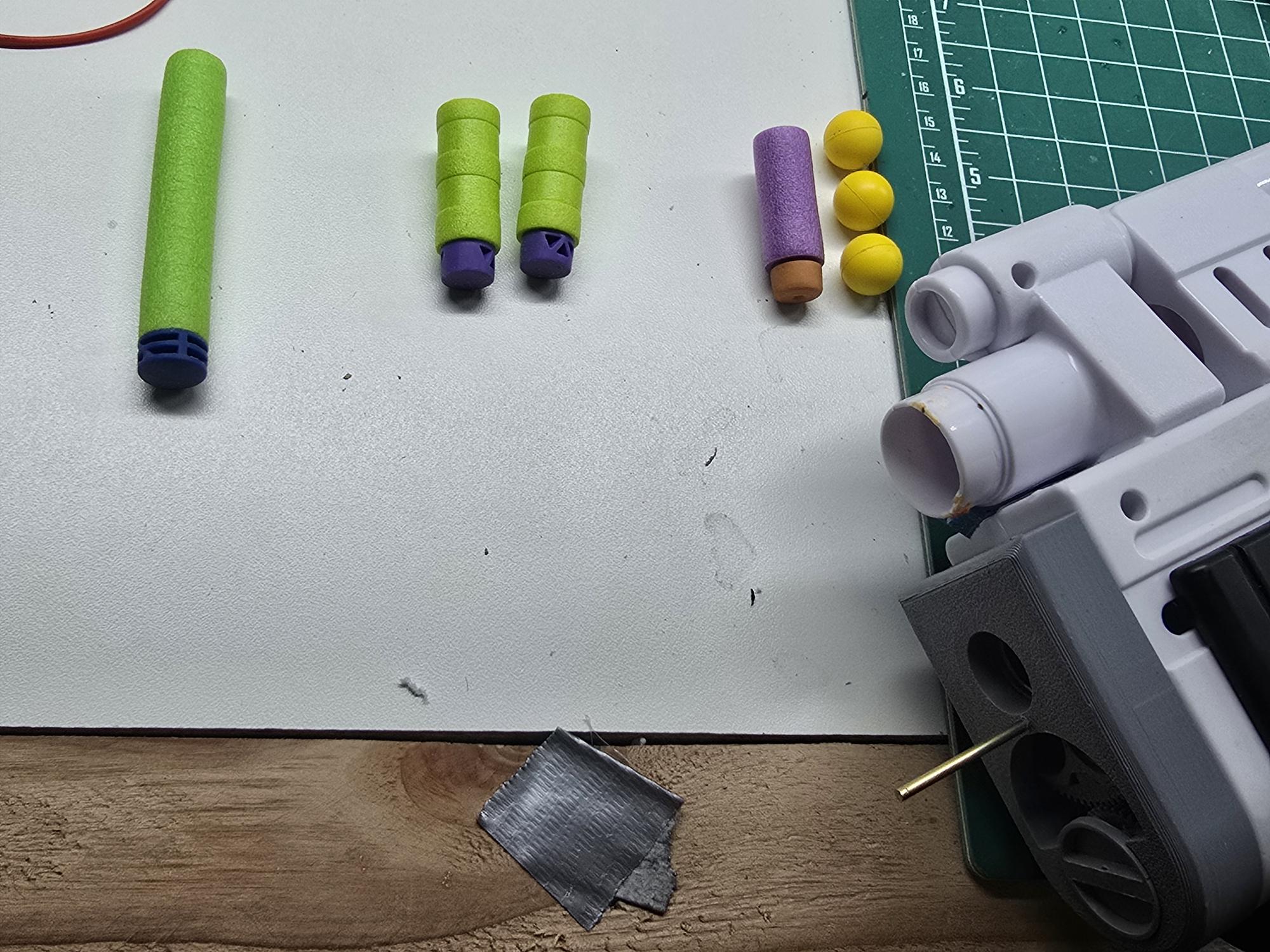 Wanted to share my upgraded my Nerf Pulse Rifle with a 60 round paintball style loader to push 50cal rounds, uses Monkey Mods 50cal foam balls for the primary. Modded the underslung launcher to a three round auto advancing grenade launcher capable of holding x1 standard nerf dart, x2 short darts, x1 short dart and x3 50cal balls, or x5 50cal balls.