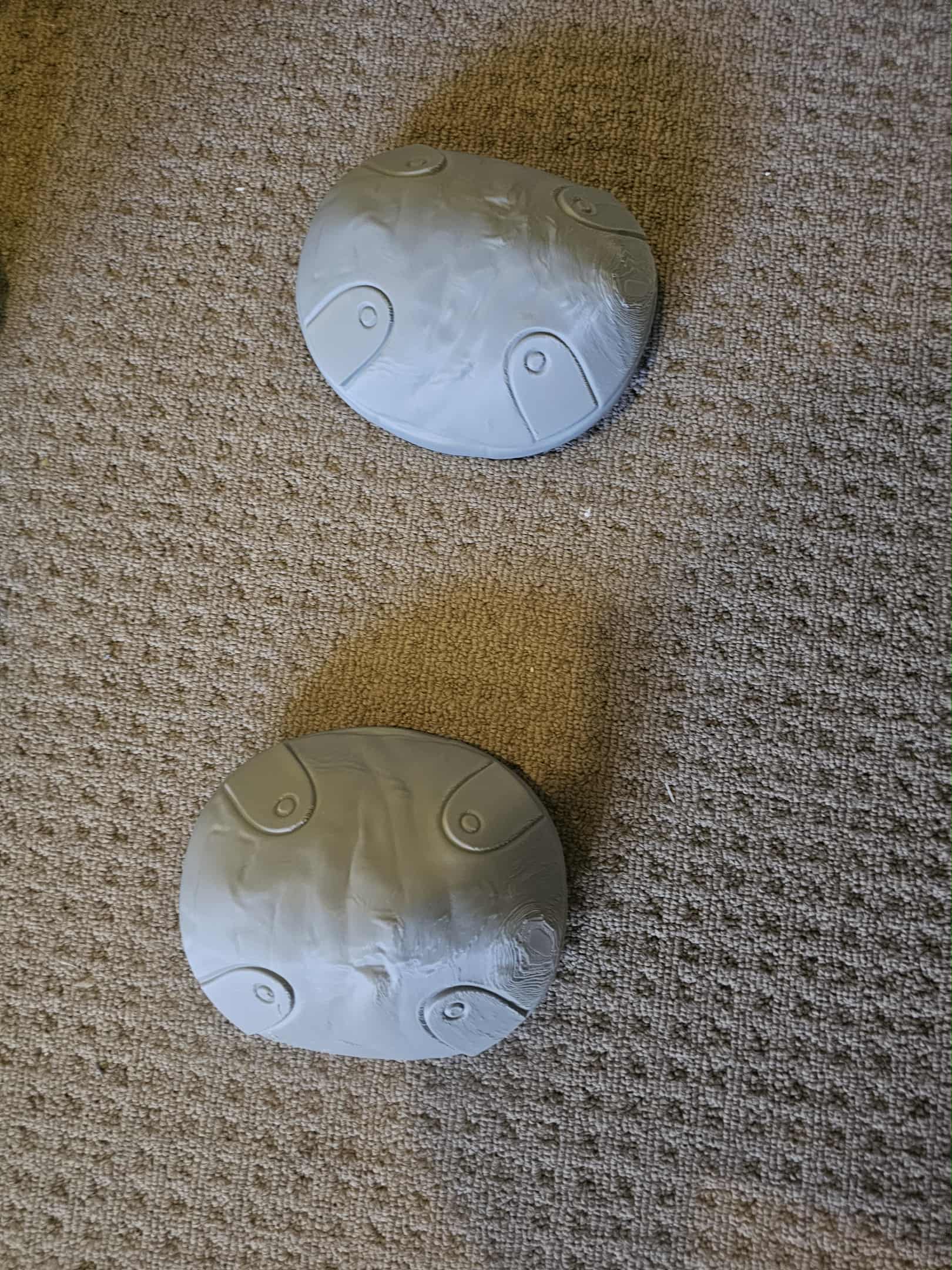 the shoulder lamp and greebles for the chest plate are still required prints. but the shoulder lamp is an extra that does not really need to be part of the final costume. in the coming months, bogging, sanding and final prep work will be done on the masters, then molding will begin. i will probably also sharpen the edging on the chest and abs V lines, re twirk the bicep guard to be a bit sharper at the base, ( bicep and Knees will be polyurethane rubber. and each piece of the shoulder sections on the chest and back plate will be cut to wearers specs, with piano hinges attached to create the clam shell effect while keeping the joins flush.