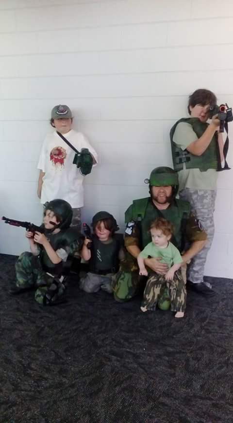 last October my family went to the Auckland Armageddon as nearly two squads of badass colonial Marines. It took me over three months of visiting opportunity shops to find enough Items of clothing to assemble seven marine uniforms. most of the DPM patterns do not mix but it was good enough. made four sets of torso armour from foam matts, not plasticoated for safety. I will however do mine when I finish my full set.