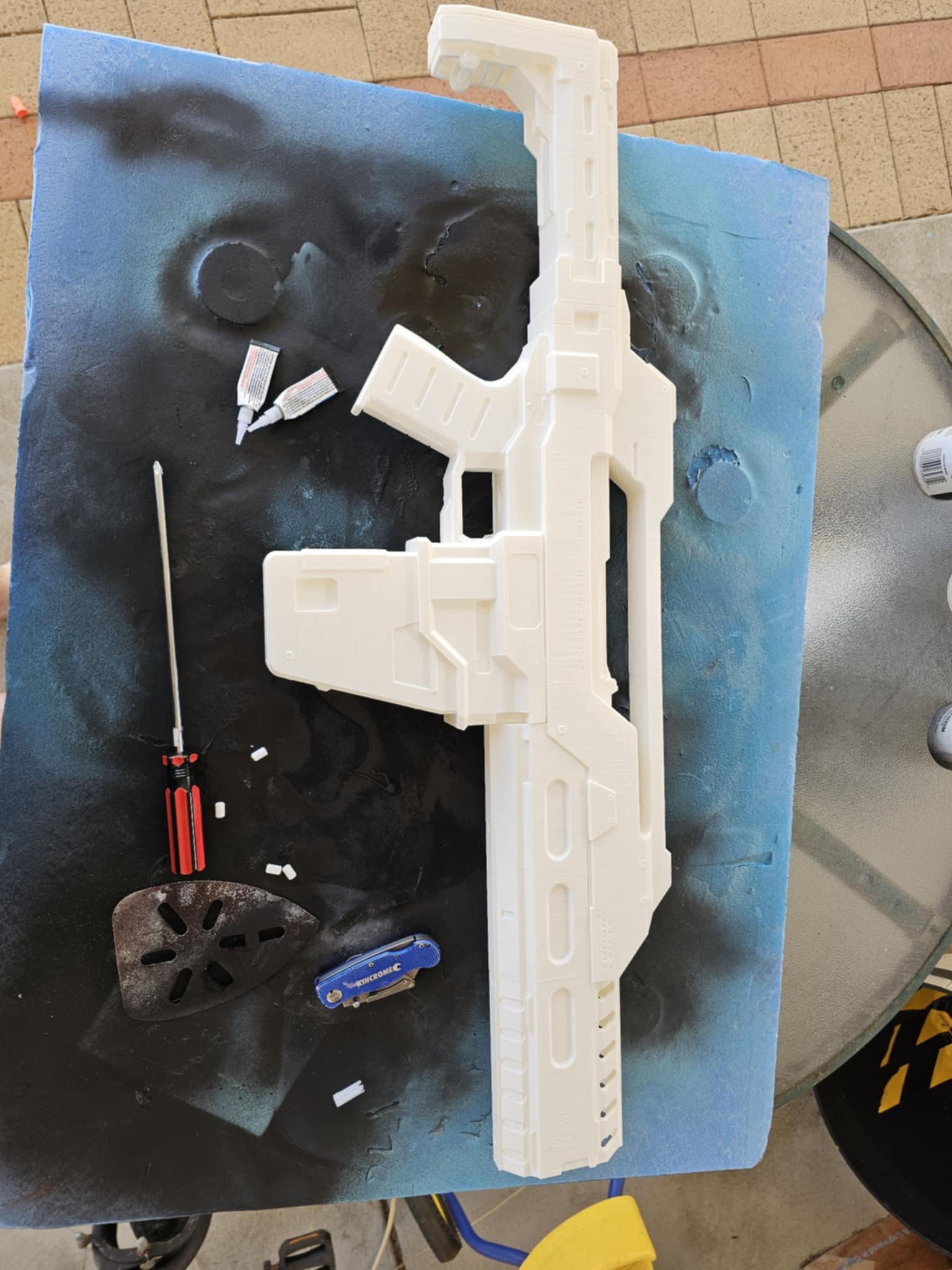 Just an Update. I was lucky enough to purchase MYARCORP's M41A2 STL file before he went MIA. last week i started printing it out, and today i started slapping it together. only a few more greebles that are on the printer now, left to go. TBH i have always hated how big the Mag was on the A2. but as a full sized rifle. i do love it. for the moment i am keeping it in 3 main pieces so i can bog it, spray putty it and sand it with ease.