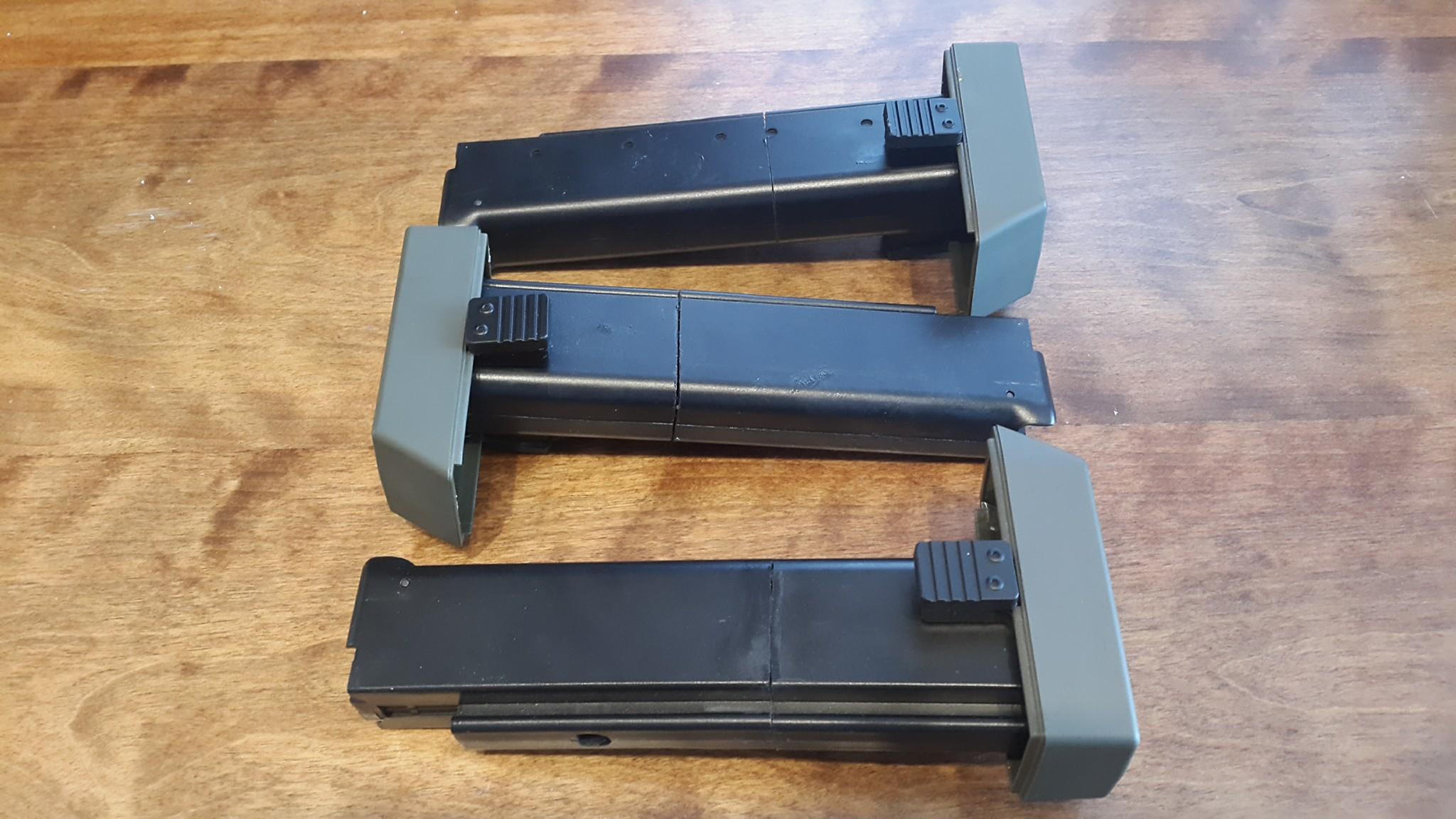 Just a little update on this. I came up with a V2 version of the slot extension (which is the one that everyone has subsequently bought from me) which improves reloading even further by having a tapered entry slot. I have also modified five KA midcap mags (using very helpful advice from this forum), and in the process, modelled and printed some simple joiners/inserts to provide a tight friction fit and allow a super strong join of the two halves of the shortened mag. Here are some photos.