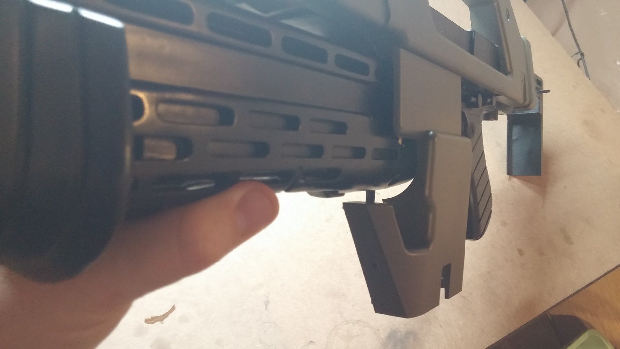 To fix that, I just deleted the excess material in the counter area to bring the shrouds 'up'. In your case, you'd have to move the grenade launcher up to fit the HCG.