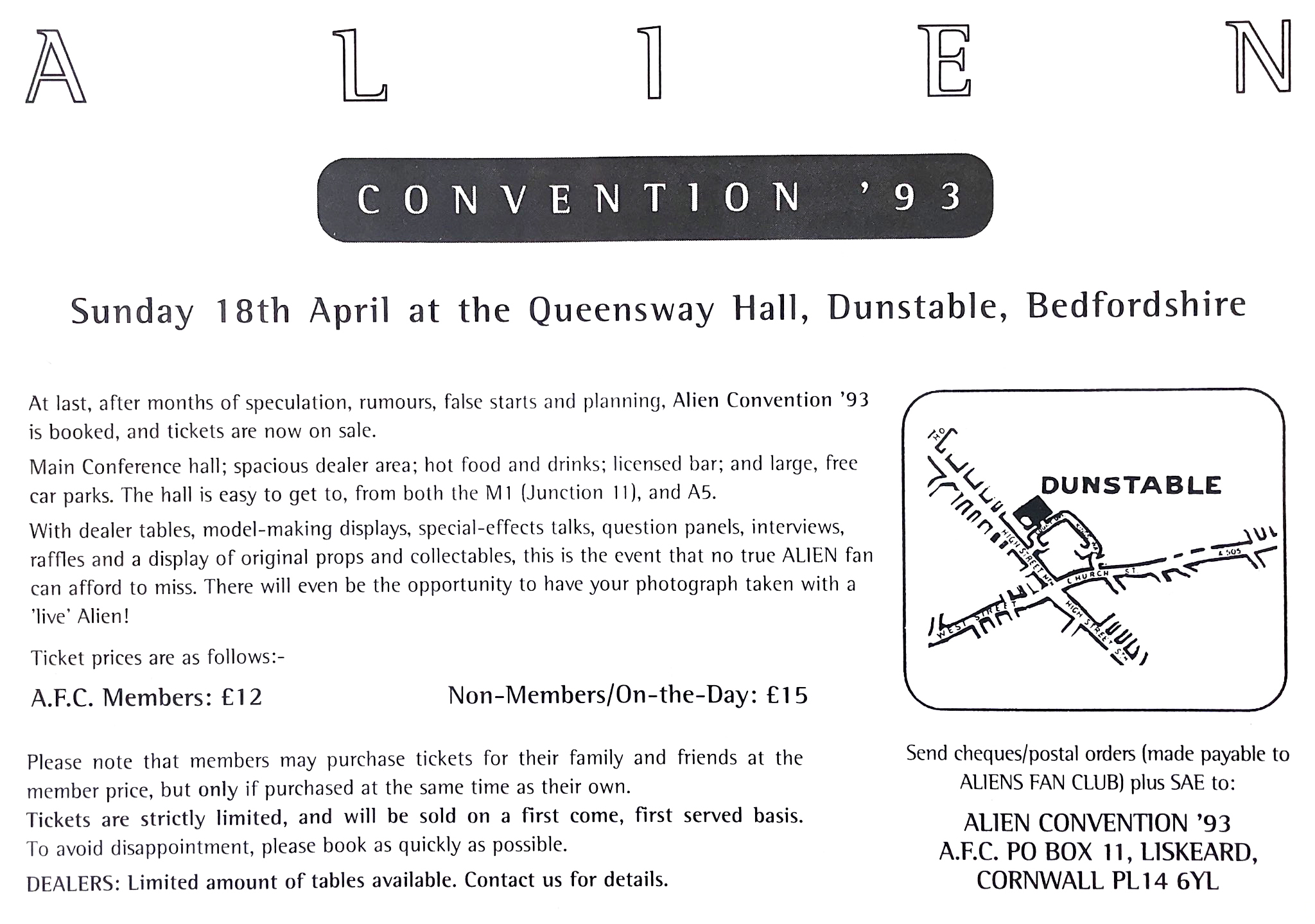 Way back in 1993 The Aiens Fan club held its first convention in Dunstable (what ever happened to Simon Clarke ?)