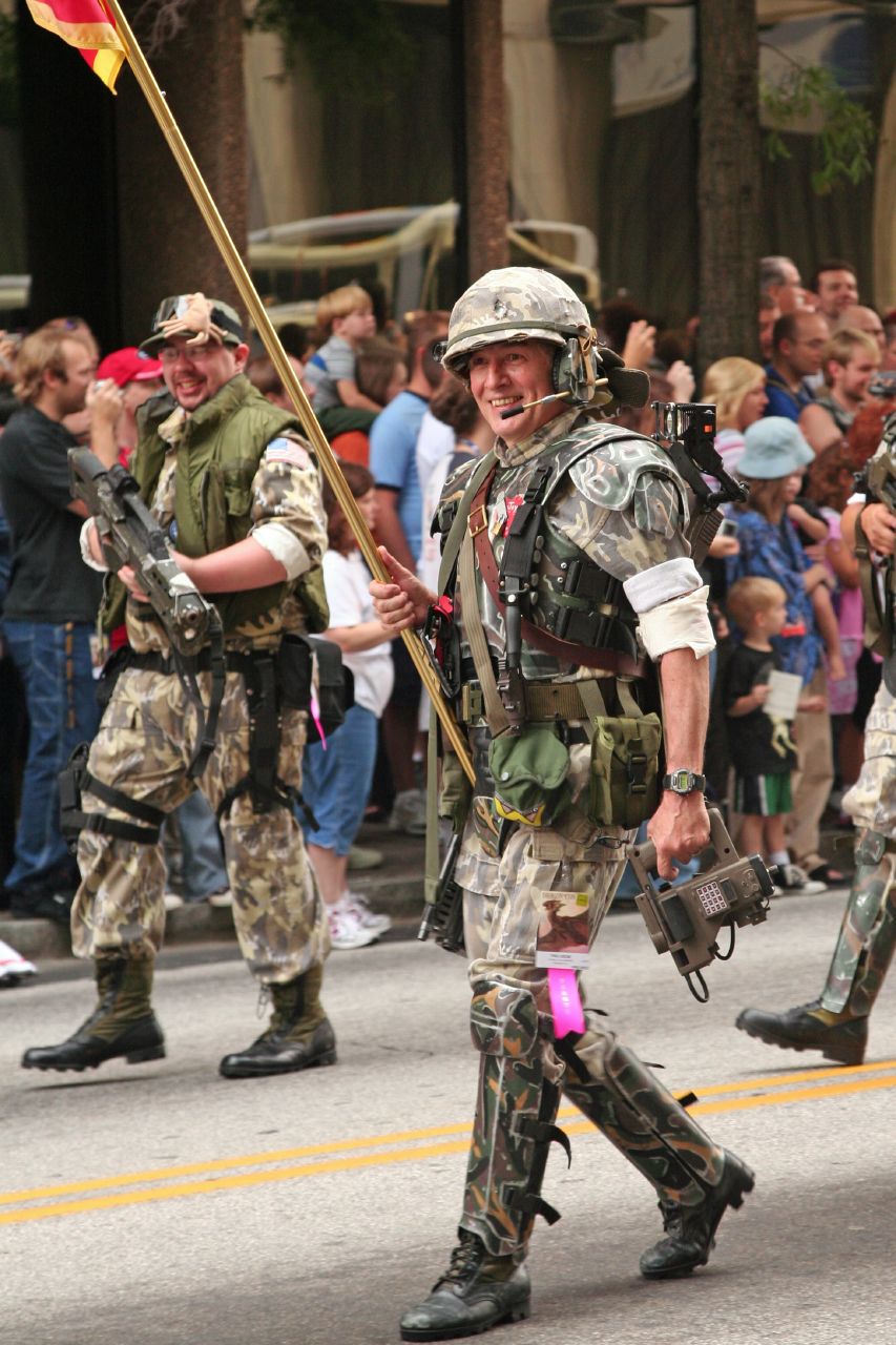 And so we marched for the first time as a unit (with the armoured Marines following in a loose "check those corners" group). We did receive some flak about the order the flags were in. And yes- I got a couple of "Thank you for your service"--- which did make me feel uncomfortable and like an imposter (which was the furthest thing I was trying to do). It was the one and only time I wore my Dress Blues at D-Con, and my only participation in the Colour Guard. In 2009 I went back to being a grunt, and that also happened to be my last Dragon Con.
