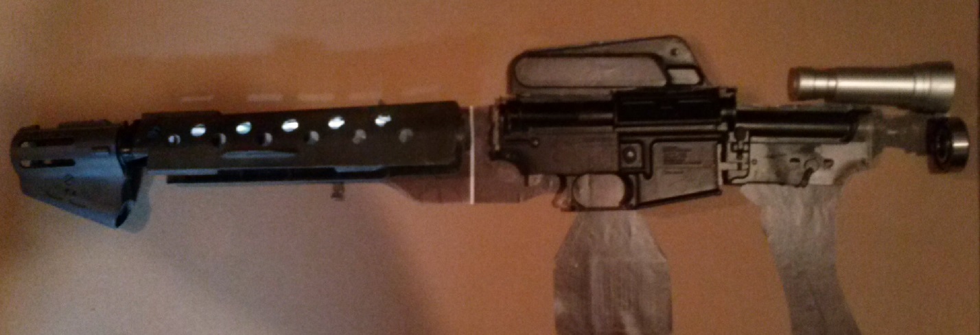 Let's work it out together! First off, I highly recommend taking one of those photos I posted, scaling it to 31.5 inches from front tip to back tip, and printing it off at 100%. This will give you a sense of what you're up against. You can use the M16 carry handle as a guide to make sure you've scaled it correctly.