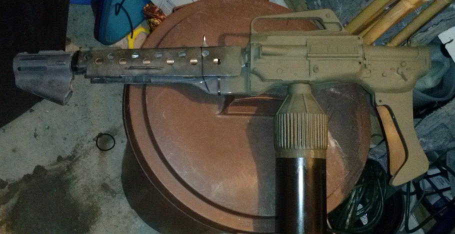 Once the bottom of the middle M16 section was properly rebuilt I was able to fill in the gaps with crumpled tin foil and putty over it. Lots of sanding going on at this point!