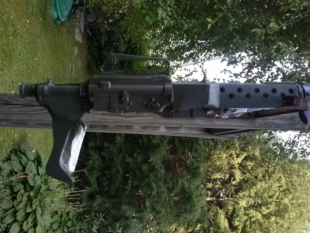 Then I painted it to see how it's coming along. Oh, I puttied up the back M16 section on the right side too. It still needs work blending into the middle M16 section, but the handle area came out well!