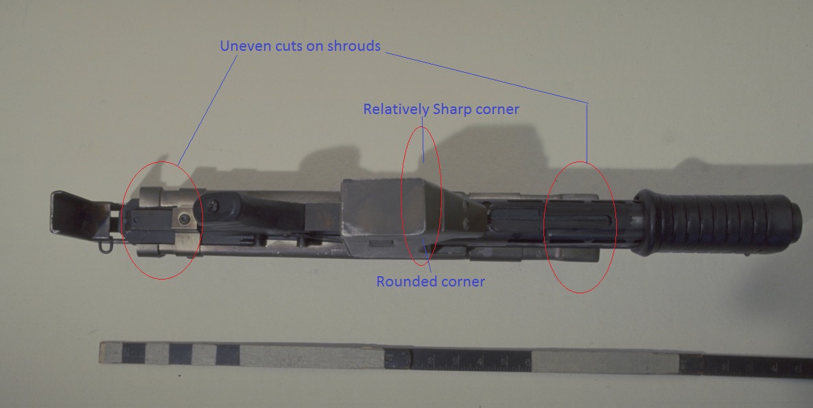 -The rear underside also appears as if the shrouds wrap all the way around it behind the grip. The shroud is clearly not two halves around the thompson as it is molded and painted as a single unit (hard to describe, hopefully images make this idea more clear)
