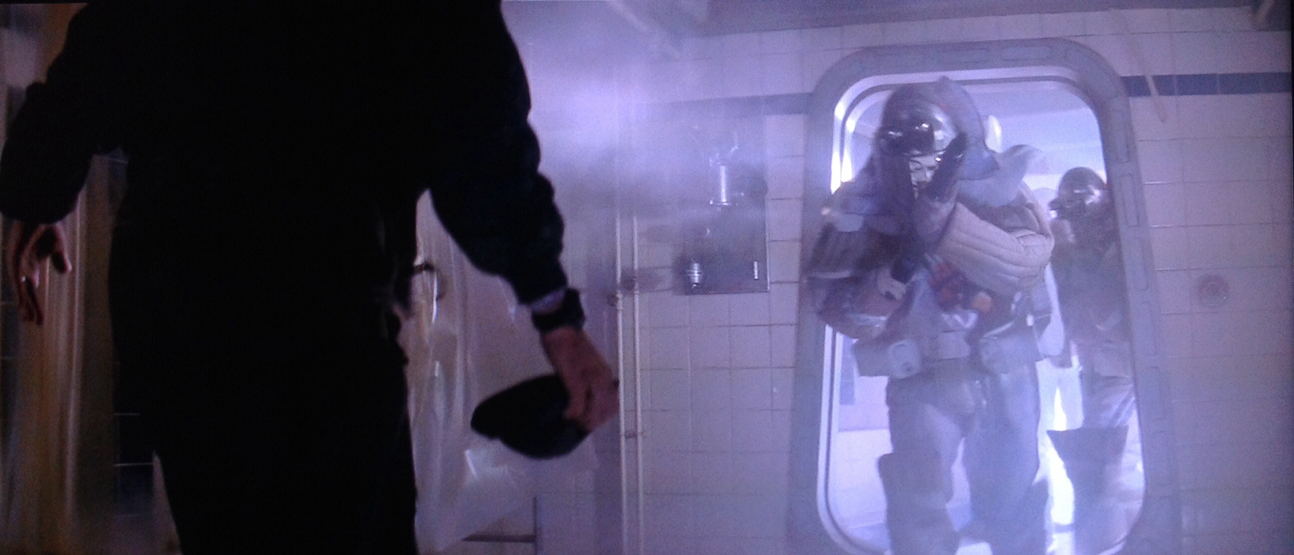 Funny, you can see how the base of the backpack became dislodged in this scene where Bishops gets hit in the back. The base seems to have popped out of place due to the actors movement. Look closely. :-) Lol