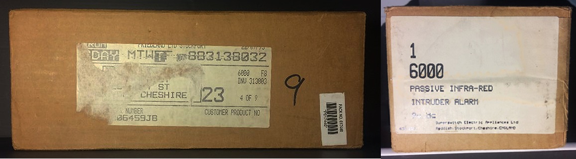 Alarm, Wall mount bracket in place, Removed, battery compartment