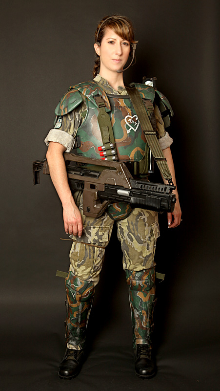 @Ttaskmaster- thank you! I do remember that thread and I thank you so much! I love doing stuff like this. It may not show off my curves as nicely and I must admit, the pants with my tight leg armor is not so flattering for my size, but I look bad ass and I love it!!! I gotta giggle about the sleeves- no military experience, just looked at Hicks and how he had his. Not to mention, the sides of the armor stick out a lot and dig into my arms so the rolling gives me some padding there and makes it more comfortable.