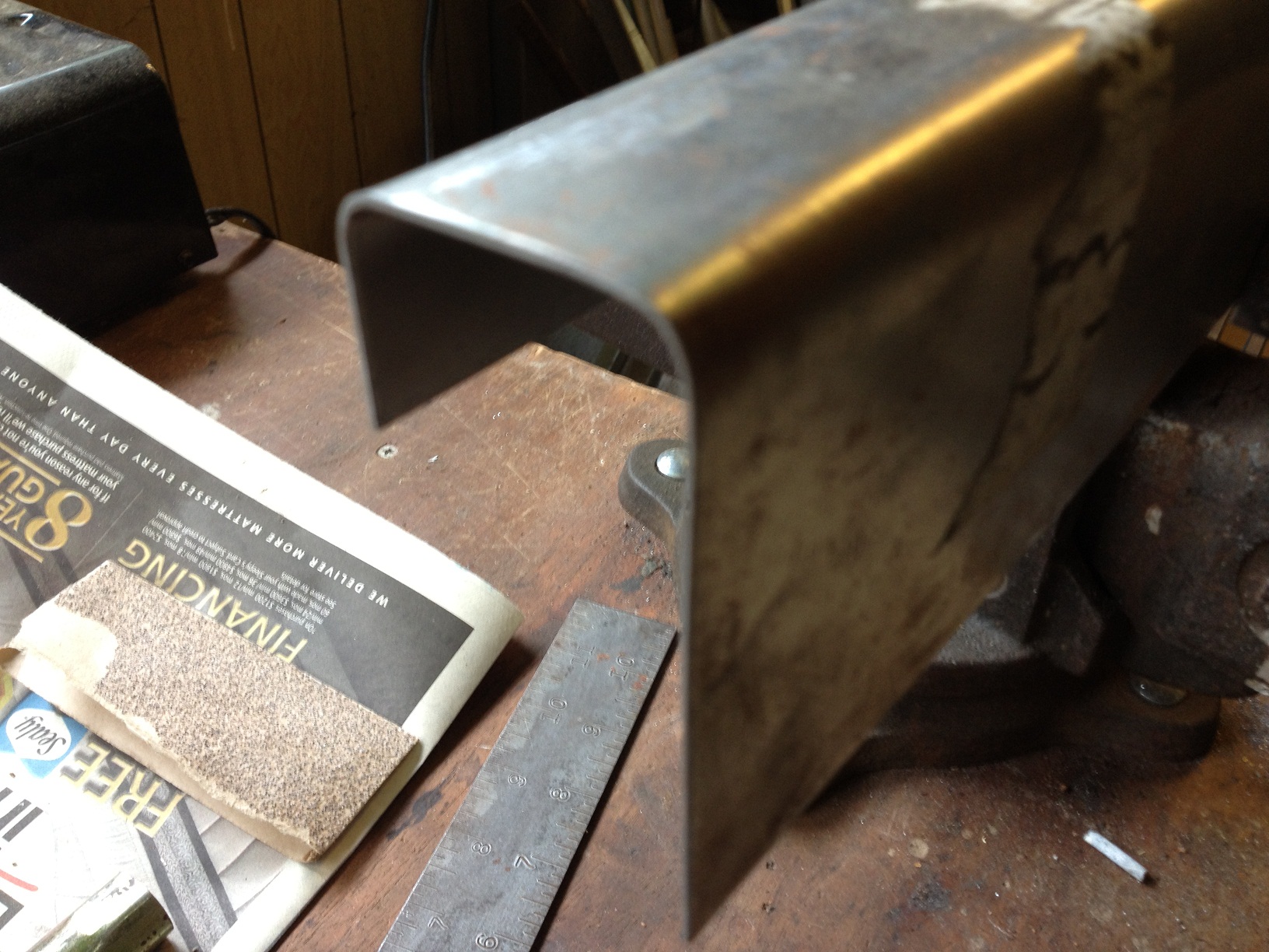 Yours already looks better than mine did. I, too, used 16 guage steel. I tried to cut the shape as one piece and bend it using a 'sheet metal' vice grip tool. DISASTER. I ended up scrapping the mangled mess and just cutting out two 'L' shapes, then welding in the top.