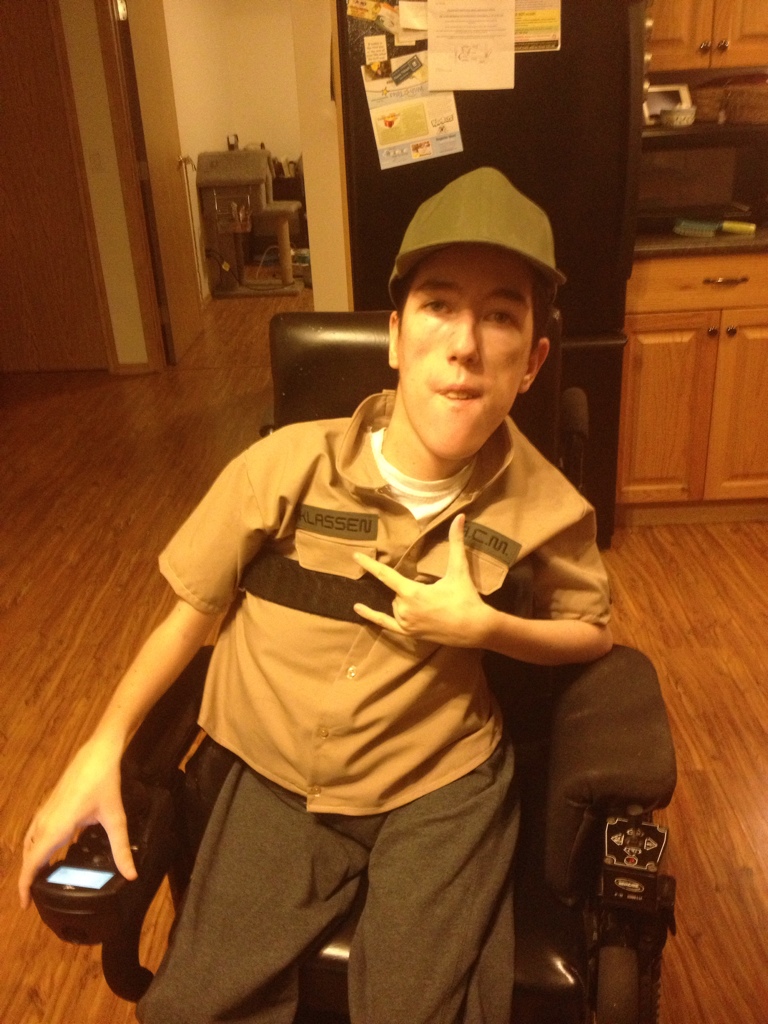 And I got fed up of waiting to order that shirt too, in the off-chance that it may not even be that comfortable so I found a basic pattern for a womens button up shirt (which took some work!, suprisingly!) and also edited it to look like a fairly screen accurate Womens style of Gormans Service C shirt. We took my measurements both lying down and sitting up in my chair, to get the best comfort and mobility, went to town and shopped for fabric. The fabric store in town was fairly limited on selection, despite it being a good sized store, so I had to order the hat supplies online, which ate a good chunk of my set budget (Damn shipping!!). But we did find some nice khaki coloured material for the shirt!, and some buttons too