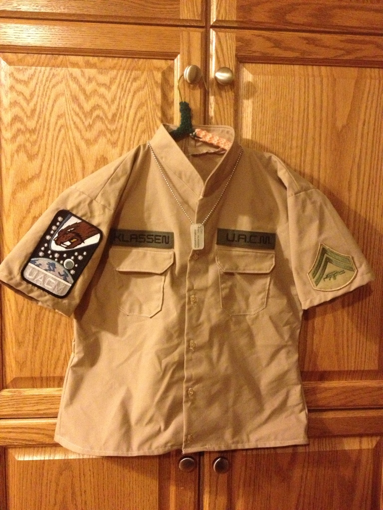 So, it all started with me and my Mom deciding to rewatch the Star Wars franchise. Last night she reminisced about when we made my ALIENS Service C shirt after she was admiring the Clone Trooper and Storm Trooper costumes in the films. She said she had fun and that we need to finish the outfit, and possibly make a better Service C shirt (because we screwed up so many times bahahaha!).