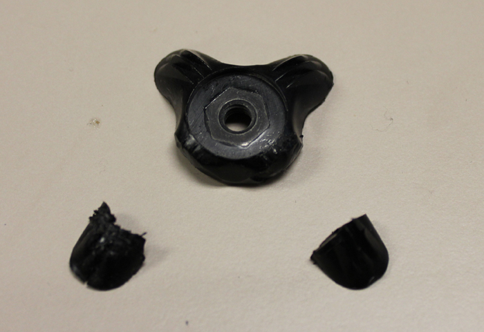 But the second I cut into the first flange (wing? outrigger?) it was a done deal. I'd paid too much for the knob to just chuck it. So I kept at it and with a bit more sanding I'd say I've got it done.