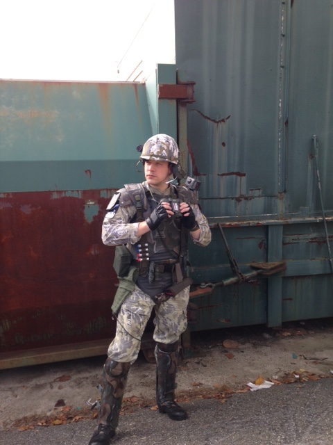 Looking good! A question on the added camo; looking at that picture I can see the difference between the collar and the bit of collarbone area not covered by the armor. Have you thought about making a dickie that would cover that part and go under the armor completely? Probably not worth the effort; from a distance I doubt I could tell the difference.