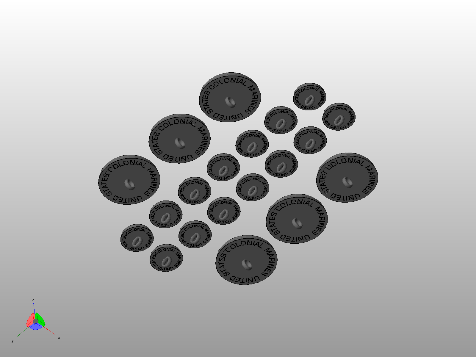 Just so you all know, there will hopefully be 6 large buttons (1" diameter) and 14 small buttons (5/8 " diameter). I know that usually it is only 12 small buttons but so e sets I've seen come with 2 extras. This was for the American USMC Dress Blues Tunic. I may even be able to include the chin strap buttons in one file as well, but don't know for sure.