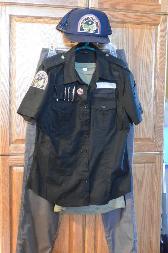 Over the weekend I finally wrangled some "Sewin' time" out of Mom, I printed off a pattern I found on the RPF for the Nostromo shirt conversion and had her add everything from it except for the breast pockets to my existing Wal-Mart shirt, so the epaulets, sleeve pocket, name tape border, chest panels, and pen loops. Also managed to sneak in some patch ironing for my shirt and her flight suit as well.