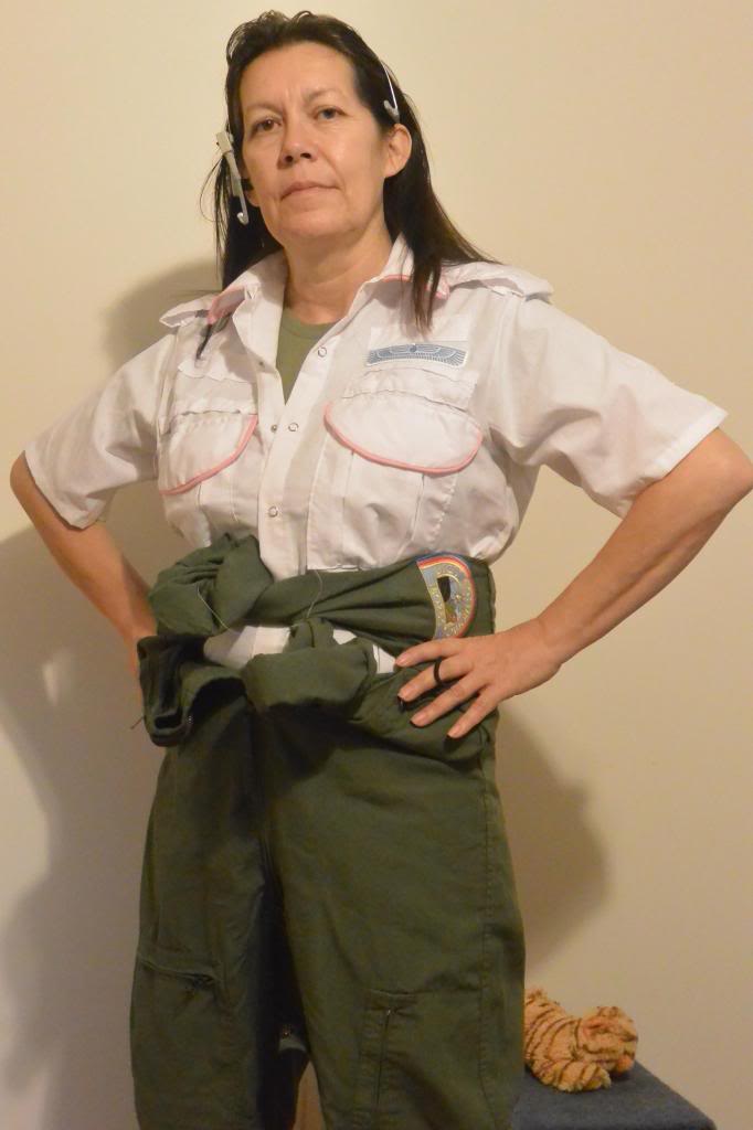 The flight suit still needs the two zippers sewn on the back along with the green lacing. The laces I ordered were too short, so I have reordered a pair longer, which should be here in time.