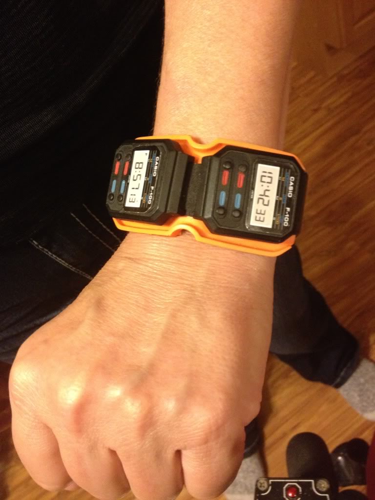 I still need to put her watch together, I have a plan to make it stay together, I will use some black thread and hand stitch the rubber bands to the nylon webbing.