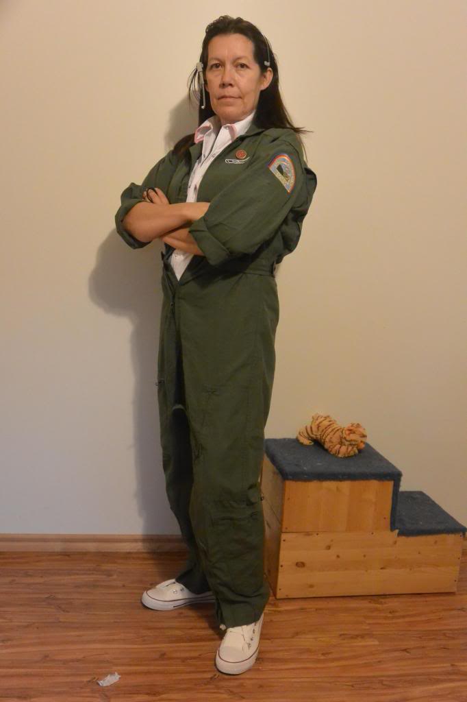 The flight suit still needs the two zippers sewn on the back along with the green lacing. The laces I ordered were too short, so I have reordered a pair longer, which should be here in time.