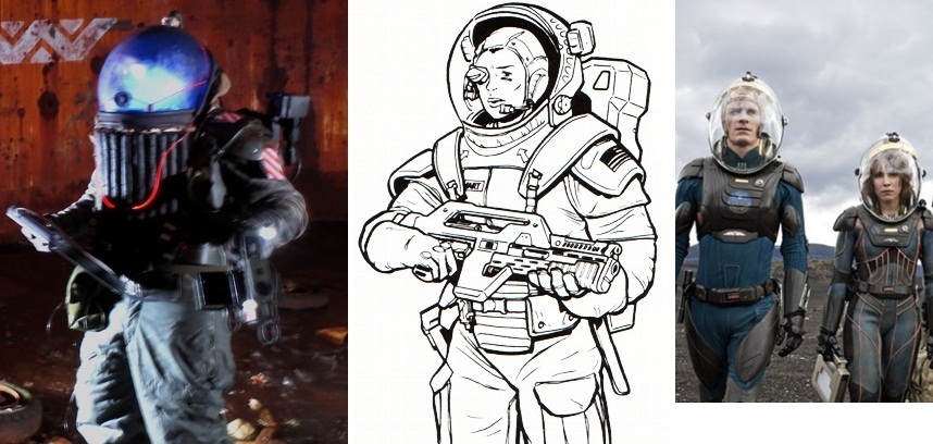 The pressure suit in the photos was a combination of Nostromo influences, Lee's USCM pressure suit from the Tech Manual (see pic below), and of course what was available for materials.