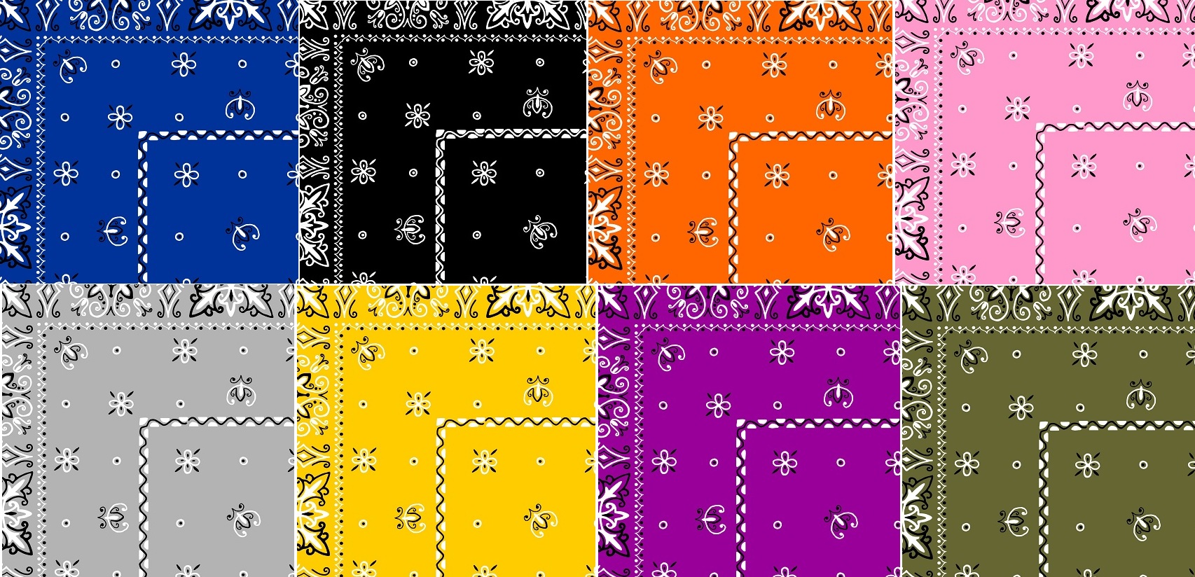 The hardest part?? Finding suitable blank bandanas in the right size!! They are not geometric, they are 20" x 22", but after many hours searching I have found a company that sells bulk volumes and offers custom sizing. They do pigment printing as well but minimum for that is 1000 pieces! And they won't print designs that could be trademarked. I will have to find another method to get the art on, in smaller volumes. I can buy the bandanas by the dozen though