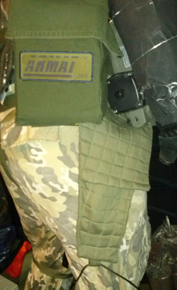 Below it is the VP70 holster I bribed a friend with a bottle of rum to make based on the reference photos of the originals. I used an old laundry sack my dad had left from his time in the Army. Like Frost, I wear my holster on the Ab Pad strap, not the belt that the pouches are on.