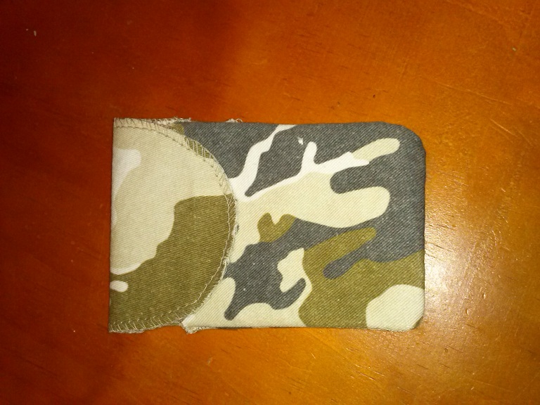 Then I flipped it right side out, leaving the spare material in place to help bulk it up. I'll cut a piece of foam to insert to really give it some shape, or maybe an Altoids tin. Finally I took the third scrap and made the flap out of it: