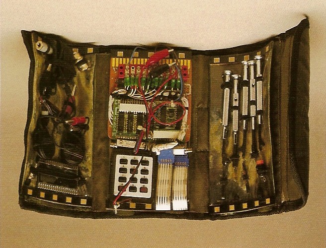 As you can see, the Multimeter takes up a lot of space, but there's still about .75" space between the multimeter and where the bottom of the circuit board ends, I will either rest the Pocket PCs wrist strap here, or the pen test leads for the multimeter.