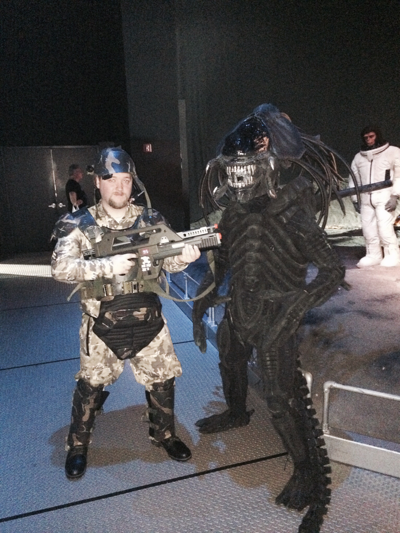 This week end two of us are going to go . Nice little event , ray parks going to be there . We're going as colonial marines . Later I'm going to switch over to my xeno costume . Should be a good time . http://www.eternalcon.com were going Saturday if any ones looking to meet up