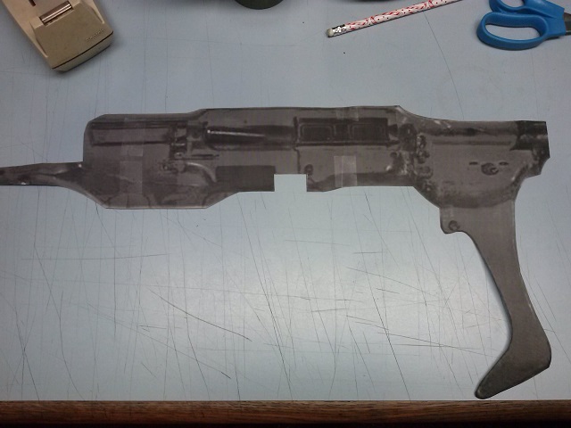 Let's work it out together! First off, I highly recommend taking one of those photos I posted, scaling it to 31.5 inches from front tip to back tip, and printing it off at 100%. This will give you a sense of what you're up against. You can use the M16 carry handle as a guide to make sure you've scaled it correctly.