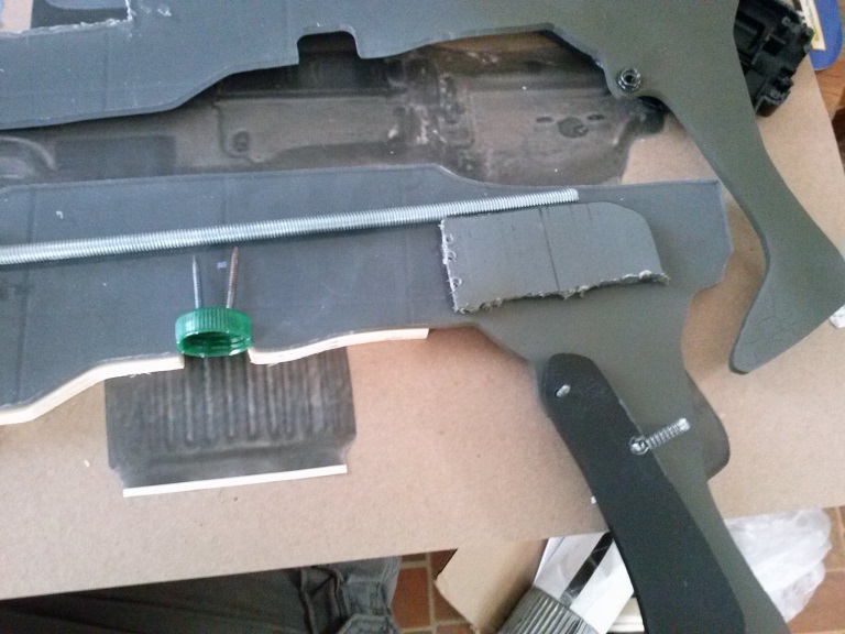 But no, I kept going and started puttying the whole thing together. I inserted a 12" thin copper pipe to hide the threaded rod and to add visual interest as it will show through the holes in the M203.