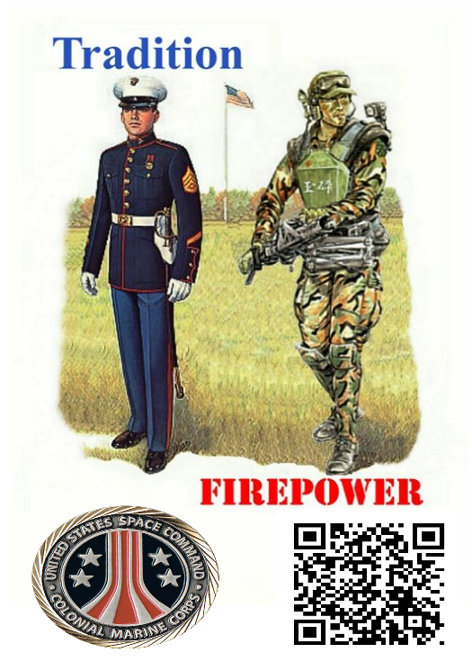 3. Possible captions to say; “COLONIAL MARINES NEED YOU”, “ENLIST HERE”, “DEFENDERS OF EARTH”, “Every Formation a Parade”, Etc, Etc…. So many possibilities we’ll decide together.