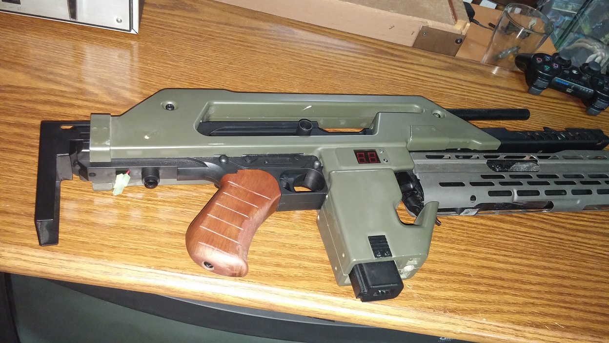 As for the 2/3rd scale: 14 years ago I bought an airsoft SPAS 12 thinking I would build a pulse with it. Obviously it was too small. I didn't realize at the time just how under-scale it was, so naturally I never did anything with it. It sat in a box for 10 years never seeing the light of day. When my son was born I was thinking "OK, now this will be for HIS pulse. Now he is almost 4, and already has marine armour, so I felt its time to get serious about building his pulse. I finally scored an appropriately sized Thompson to pair with it, so I will be documenting this build in another thread!