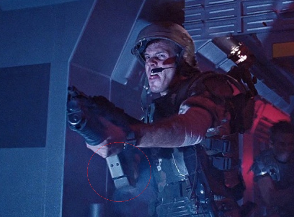 It goes without saying, but the stunts were used in numerous background shots and used extensively when "multi-tasking" was required. Most every character has one eventually and they are particularly noticeable when the character is also carrying a flashlight or motion tracker in the other hand. (or has a flamethrower duct taped to it)