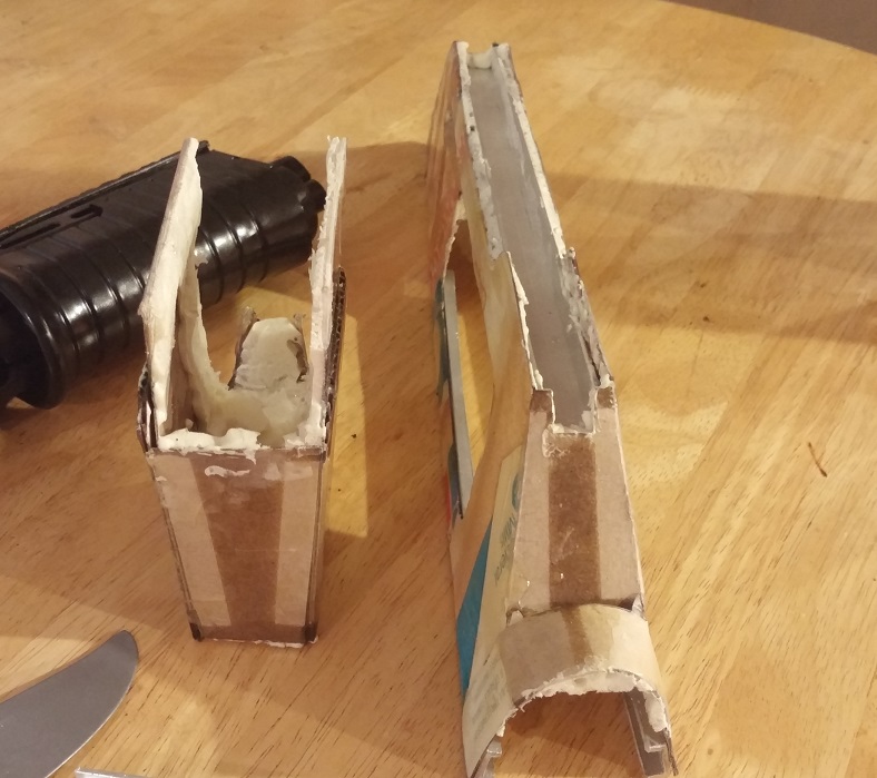 -I wanted to make the grenade launcher a live fire item of "suction cup darts". To do this I bought a cheap suction cup dart shotgun that would fit in the cage. This plan failed horribly!!! The cheap suction cup shotgun was not able to be shortened and keep its firing mechanism. Neither its 'guts' nor its frame could stand up to much modding. I guess it looks better in there than foam though, so I will be using it if for no other reason than lightweight filler with a spring tension trigger.