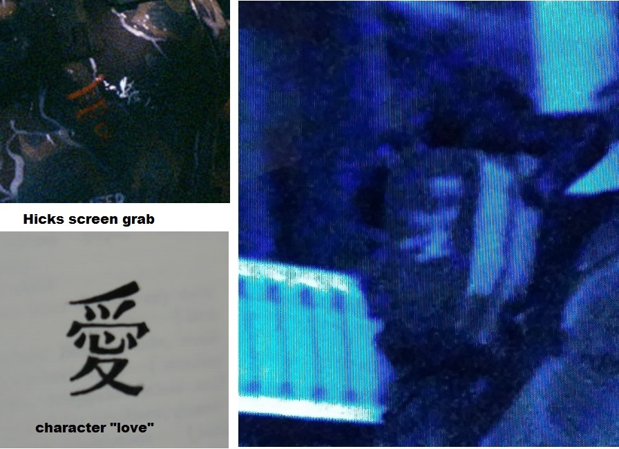 It looks a LOT like the same Kanji Hicks has? Surely they wouldnt put 'love' on the backs of two different characters??? Both did have hearts though...