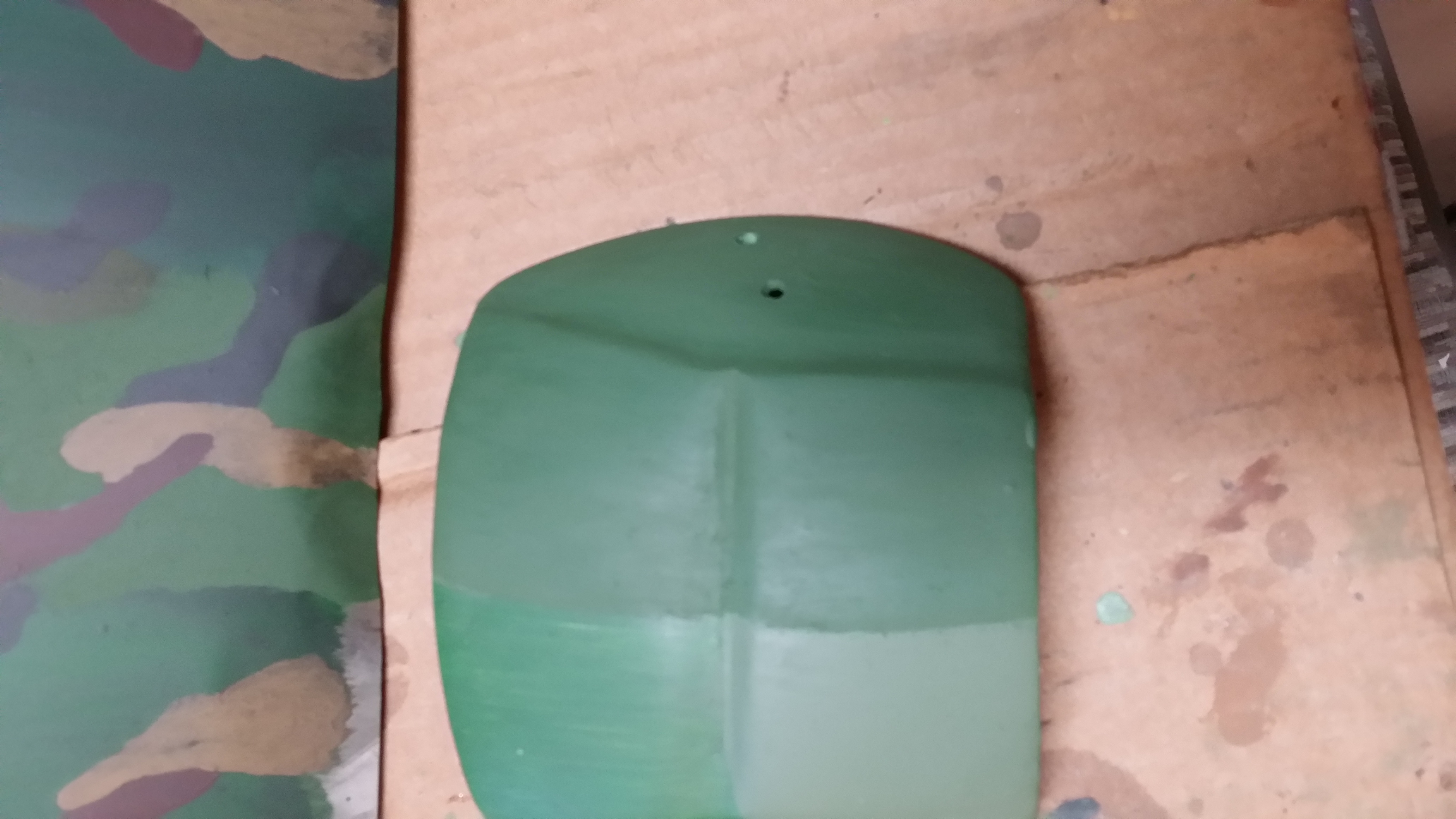 Yes, 105 is the center color on the aluminum plate on the left, and the top color on the knee plate. It's an interesting color because it appears much darker and greener in person. It was only after I tried some different lighting and flash photography (albeit with my phone) that I found that it does actually appear similar. I'm doing a quick sample job on one of my greaves to see how it looks on a larger scale, since I plan to strip it and repaint it anyway. I'll try and get some pics of it tomorrow before work.