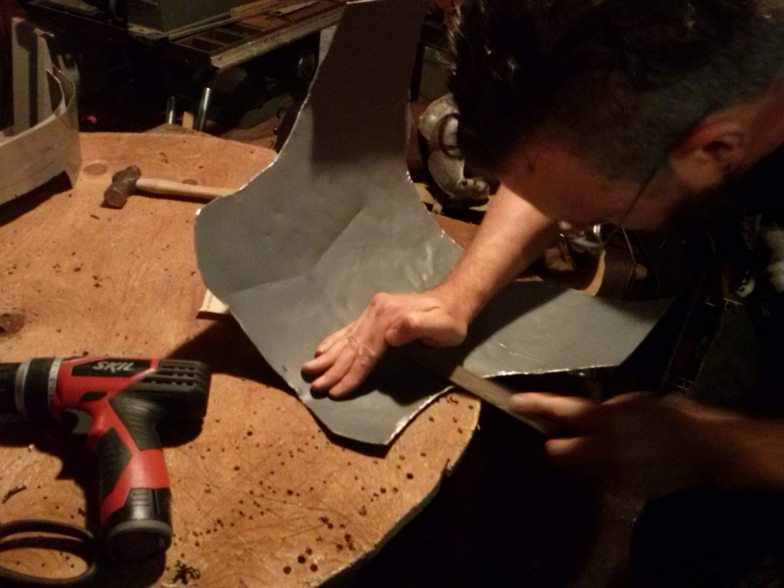 so I've dropped a few hints over the last few months, but for my birthday back in March my brother started helping me make a metal breastplate as a present. When we were kids we had these huge dished metal sleds, and I'd noticed he was turning one of them into a shield: