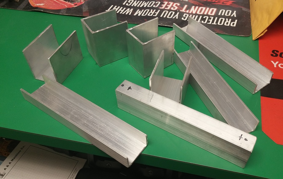 The Brackets were built from a 2"x4"x12" rectangle aluminum tube, cut up into these pieces.