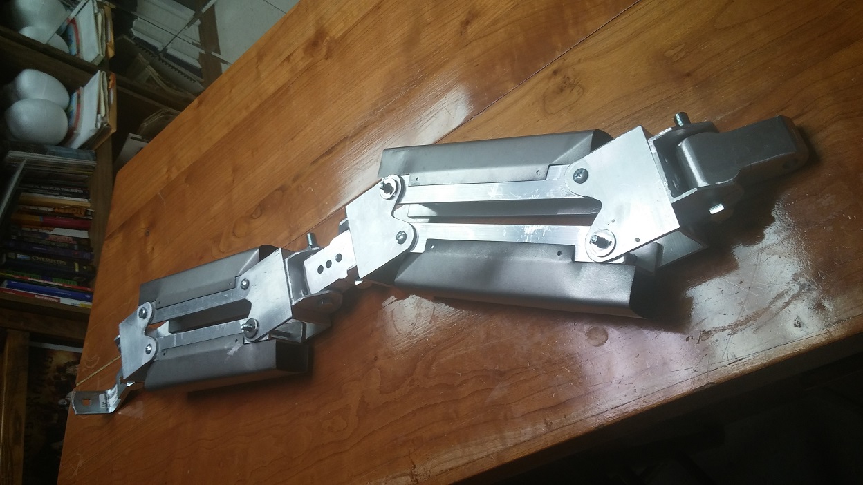 Lots of work to do still. I plan to rivet in the cross sections to hold the bolts after I trim them down and drill them out. The rivet plan is possibly not a great one, but fingers crossed. If it all works I will try to fabricate the screen accurate style cover over the arm. Those covers are the key to the look I think, but first things first... (an arm that wont collapse)