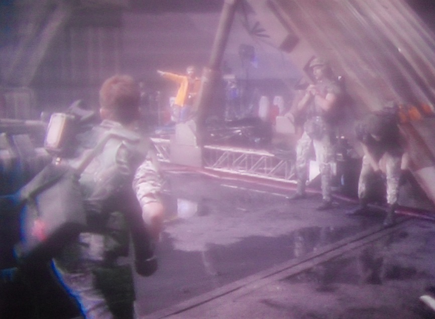 When Frost says "Yo, hicks". It can be scene as Hicks strolls over to get a look.