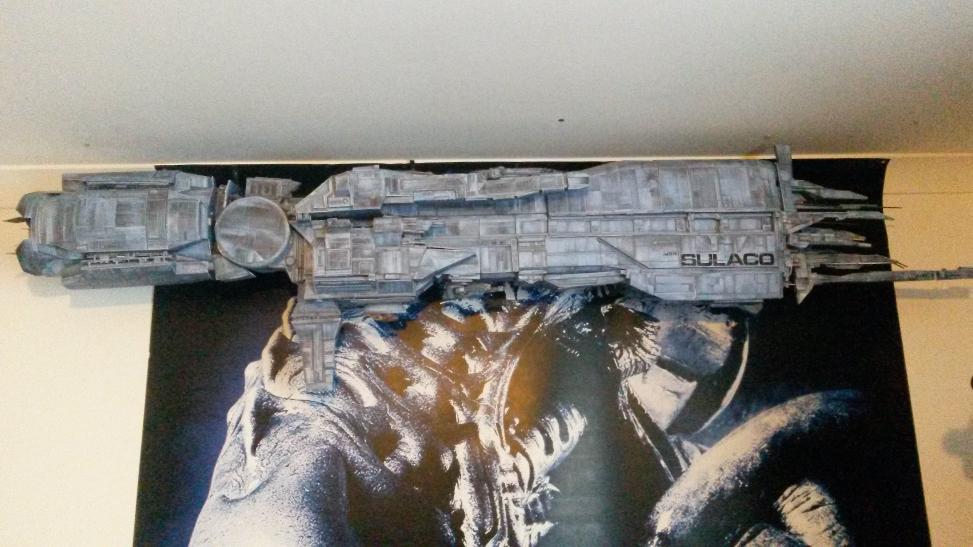 Thanks for the kind words guys. Ah the Sulaco, she's the cardboard model created by Jan Rukr. It's available on line in the Aliens or Alien 3 guise but be careful she's addictive and an origami nightmare, you'll empty your local ink suppliers shelves and use half a rain forest!! But definitely worth it, it's so cool ☺