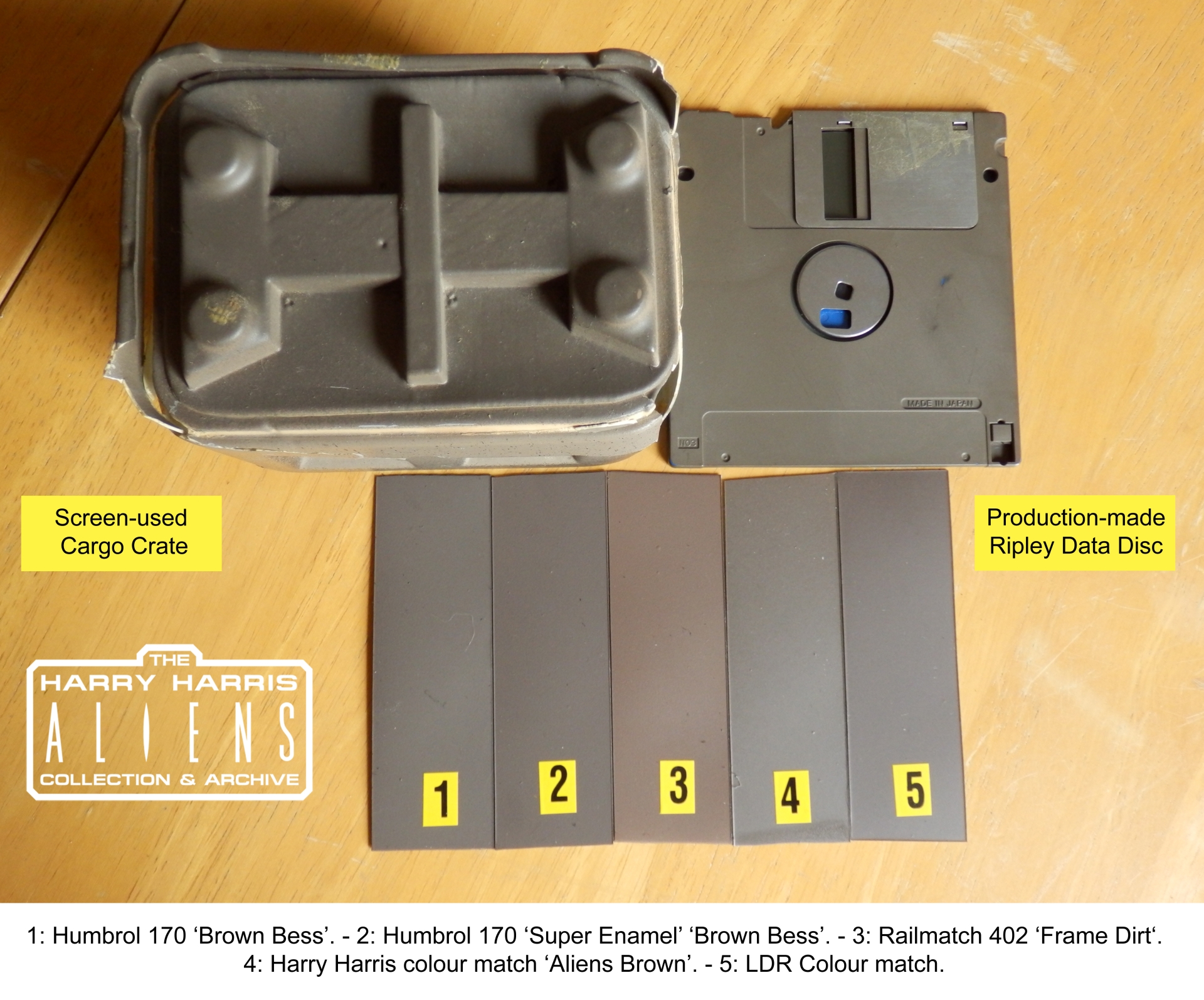 That said I do remember many (many) years ago going through some Humbrol tins to compare them with the camera body on my original Drake headset. 170 looked spot on and I remember cautiously painting a very tiny bit of it onto a part-hidden area of the camera and it was a perfect match. Why the original (i.e. not Super Enamel) 170 that I have very slightly differs from the disc and crate in the above photographs is unknown. The headset is in storage so I can't access it easily at the moment but next time I do I'll carefully try this again!