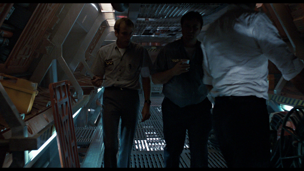 Pausing the blu ray and looking carefully around, ever since the special edition came out shows you LOTS. Even if you are as crazy as me and like to inspect every spec of dust, and have seen the movie several hundred times, there's ALWAYS something else to spot. I'd like to know what is beyond that door at the end of the corridor also, it could be another room, it could be the outer wall (as a connection to other modular buildings/access corridors). I have my theories, but that's for another time. As I explained yesterday, and as in Mooshe's correct picture earlier, showing the paths Vaz and Hudson take - Vaz moves EAST down the corridor (that a lot of people understandably miss, granted), and Hudson moves NORTH towards the barricade. This is not only interesting for mapping the colony, but it could give us a slight indication of the main direction or at least timing of the latter alien waves, as Hudon's tracker beeps first, then there is a significant time delay and movement (considering how slow the aliens are crawling, gauged from when they are moving slowly "right outside the door" towards the team in Ops a minute or two later), til we hear Vaz's starting to beep also. As we learn, they are pretty much surrounded quickly, but its another thing to learn about the final attacks. The Simpson Lydecker walk at the beginning, shows the detail right outside the door near the small stairway up, which we've known for a long time goes up to the crawlspace/top maintenance are above Ops.