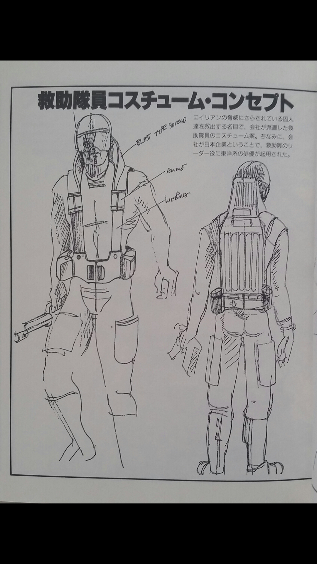 No sure if anyone owns the Japanese Making of Alien 3 book. I do and it has many great behind the scenes spfx and production photos, plus design sketches of the Weyland Yutani Commando backpack. Looks like its purpose was for medical reasons more so than military hardware. Here are the pics and translation. I'll share the other pics with translation as well.